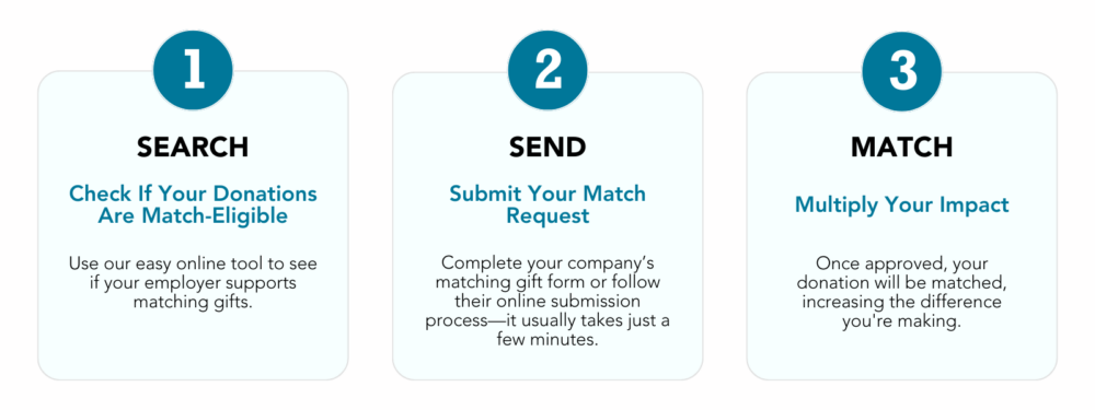 Maximize the impact of your donation with your company’s matching gift program. See if your employer will match your donation and unlock even more power from your generosity today.